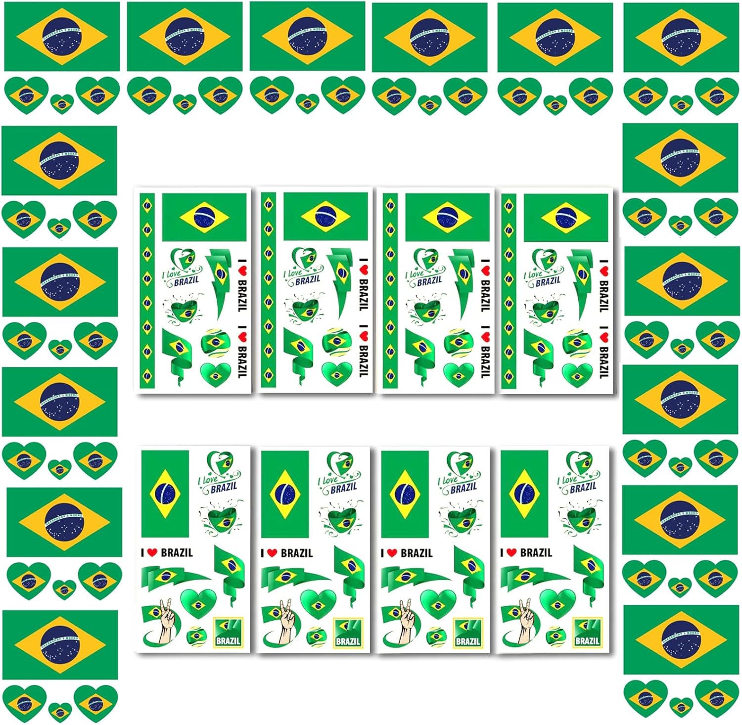 Adesivo Facial e Corporal Brasil – Cartelas Sortidas para Torcida e Festas