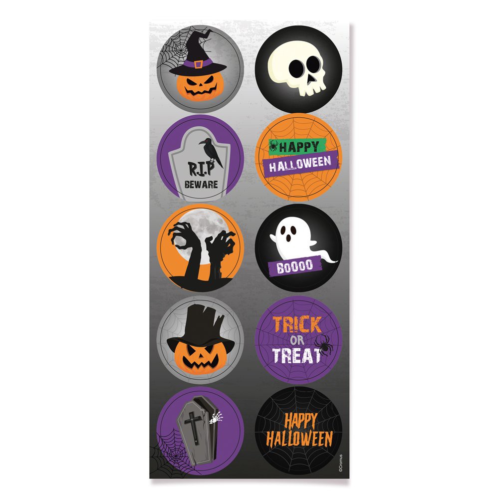 Adesivo Decorativo Redondo Halloween - 3 Cartelas Com 10 Adesivos Cada (30 Unidades)