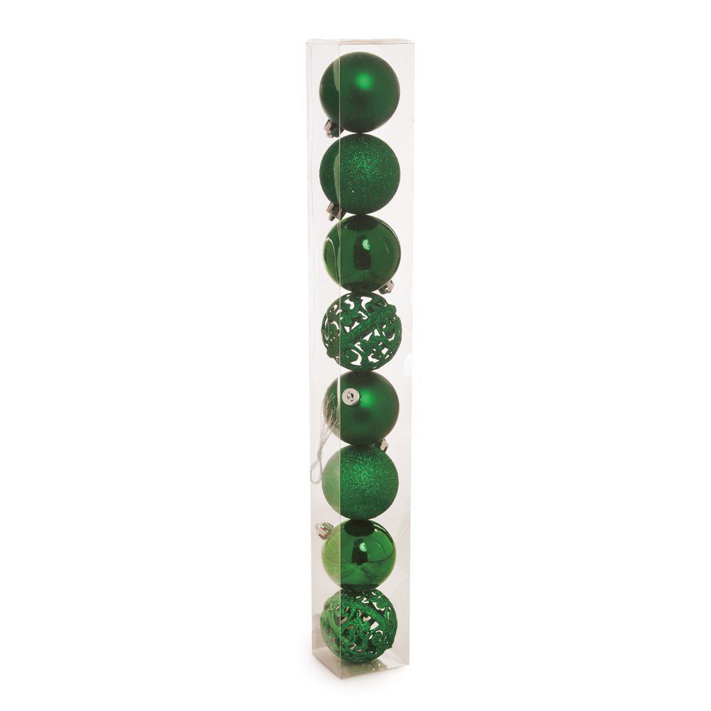 Bolas decorativas de Natal, sendo 2 lisa, 2 fosco, 2 glitter e 2 arabesco.