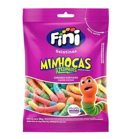 Bala Gelatina Minhocas 90g Fini, é feita com gelatina natural, um complemento alimentar nutritivo e saudável. O formato das balas são divertidos e atrativos e os sabores são exclusivos. As embalagens são projetadas para uma melhor conservação, destacando assim, a aparência do produto.