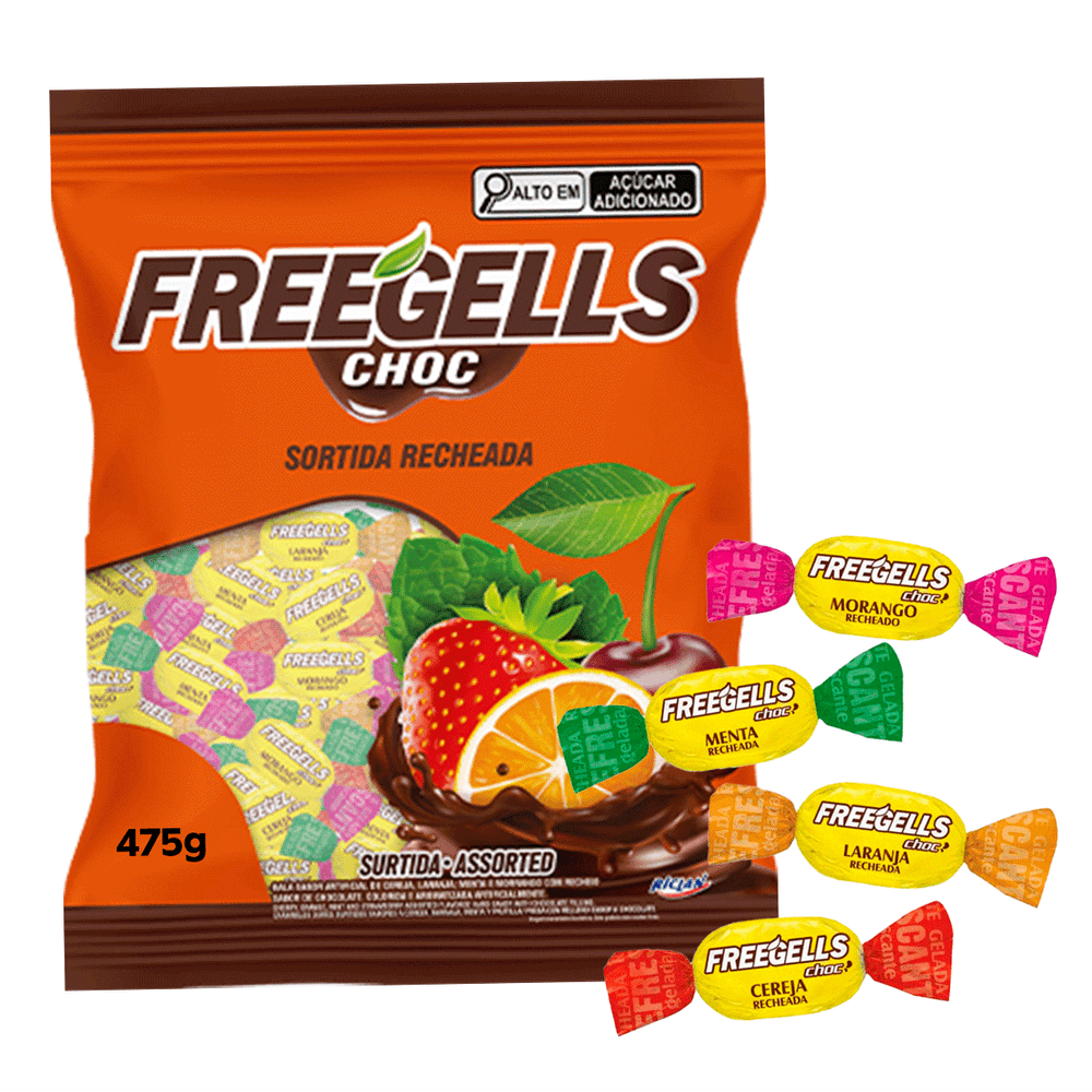 Bala Recheada com Chocolate Sortida Freegells Riclan 475g
