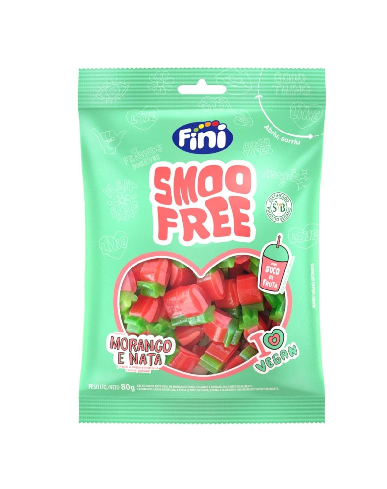 Bala Vegana smoofree Morango e Nata 80G fini, é feita com gelatina natural, um complemento alimentar nutritivo e saudável. O formato das balas são divertidos e atrativos e os sabores são exclusivos. As embalagens são projetadas para uma melhor conservação, destacando assim, a aparência do produto.