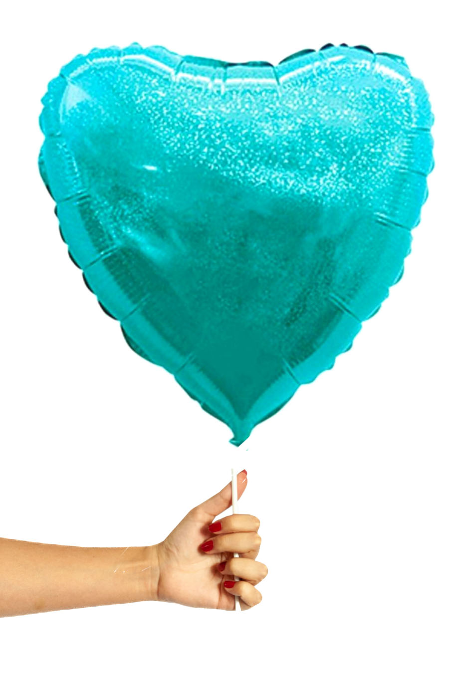 Balão Metalizado Coração Tiffany Linha Hologlitter - Tamanho do Balão 10 Polegadas (25cm) + Vareta de 19cm - 1 Unidade