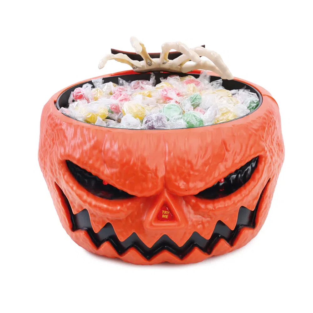 Baleiro com movimento. Ao tentar pegar o doce, é acionado um sensor que faz com que uma mão saia e tente te pegar.