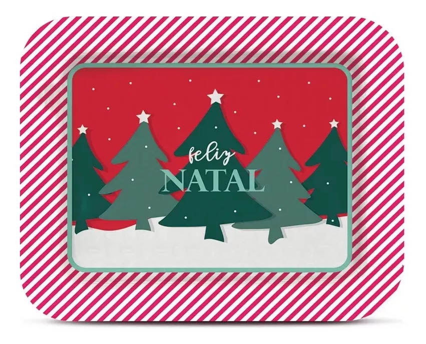 Bandeja Feliz Natal 40x33cm Laminada Candycane - 1 Unidade