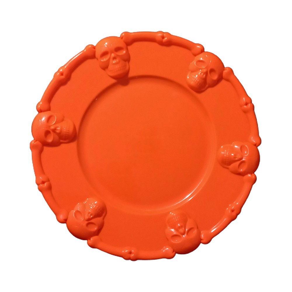 Bandeja Redonda para Decoração de Halloween com Caveiras - 36 Centímetros de Diâmetro