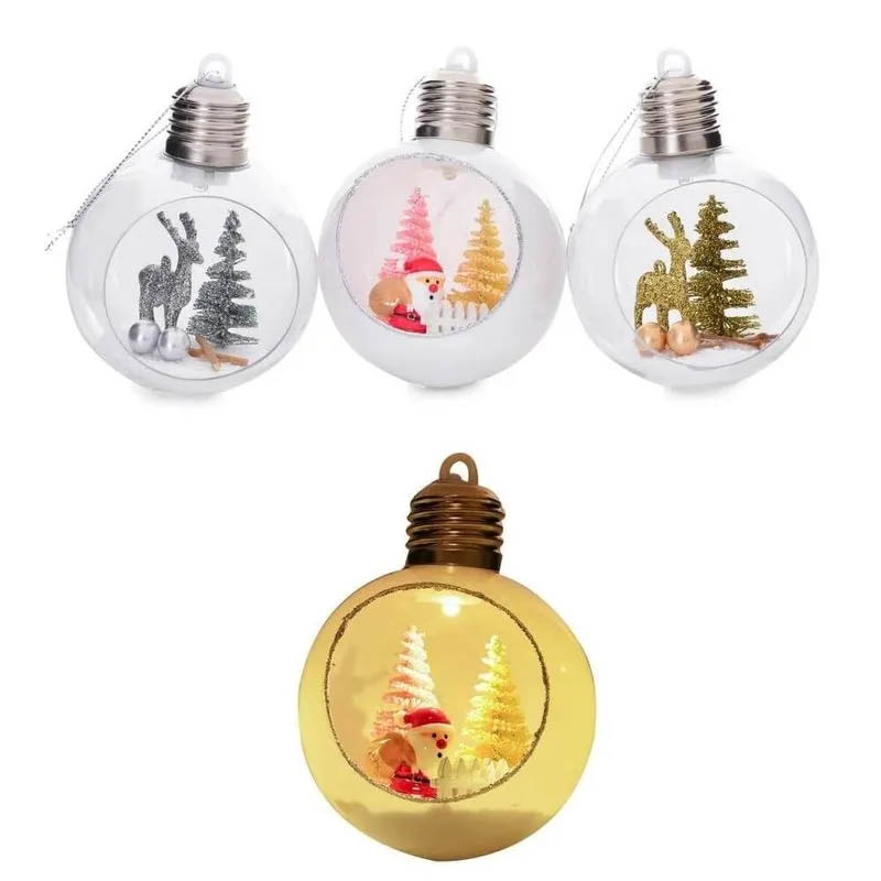 Bola de Natal Decorativa - Papai Noel LED (12cm) em Plástico transparente aberto com Árvore de Natal ou Pinheiro ( Envio Variado)