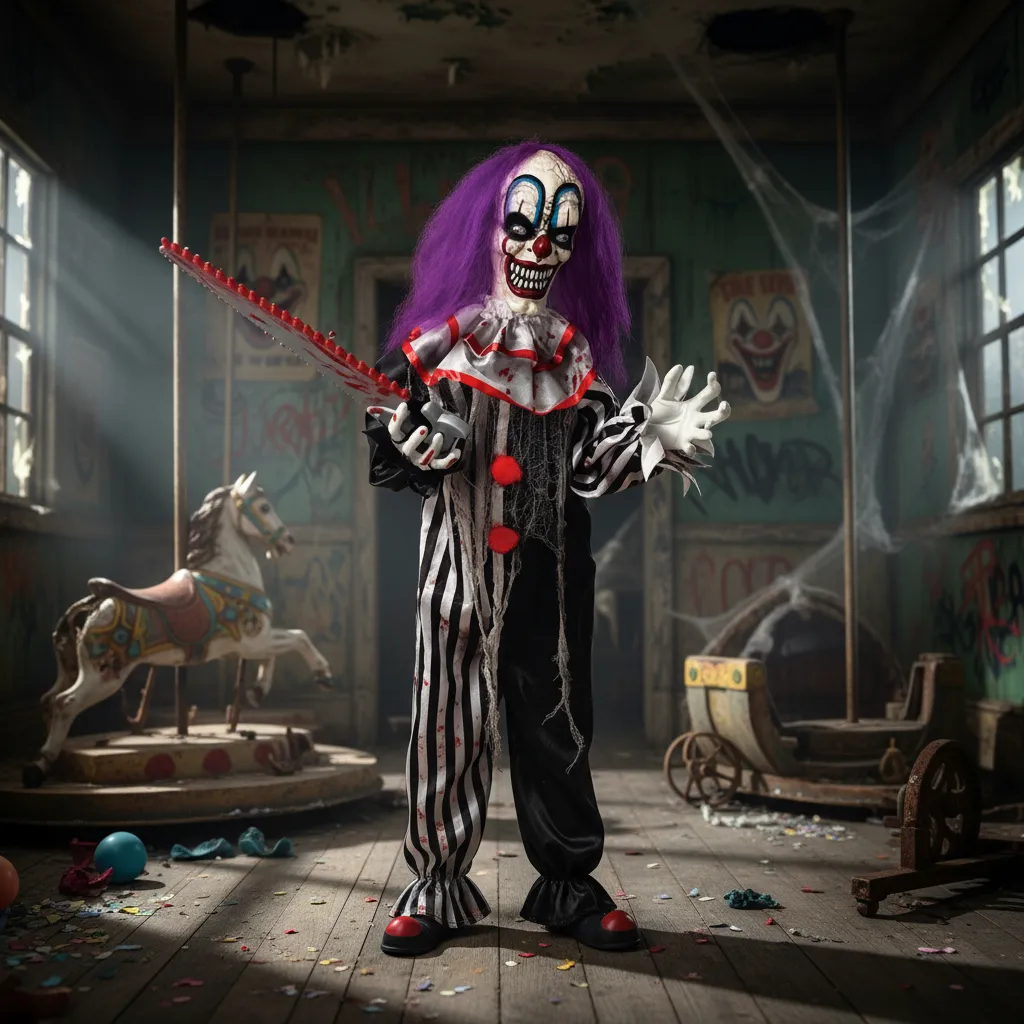 Transforme seu Halloween em um verdadeiro cenário de terror com esse palhaço animado que garante