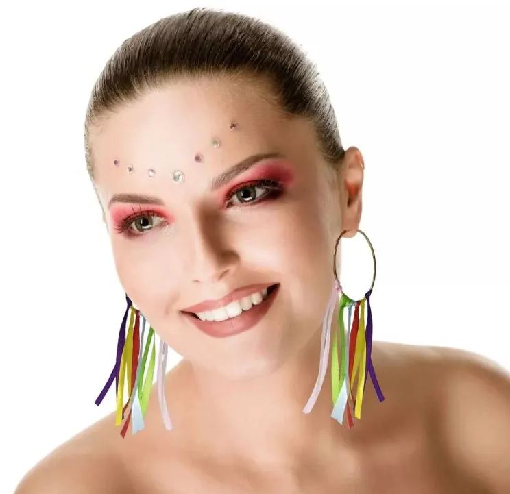 Complete seu visual carnavalesco com o Brinco Argola com Fitas Coloridas! Um acessório vibrante, alegre e cheio de estilo, ideal para quem quer destacar a fantasia ou o look temático com muita cor e personalidade.