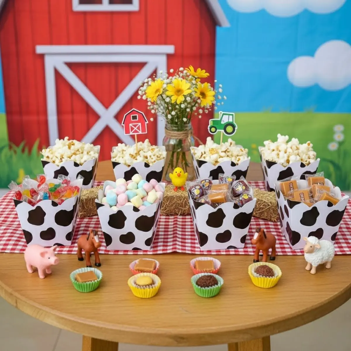 Deixe sua festa ainda mais charmosa com o cachepô Fazendinha Vaquinha! Com estampa divertida que imita as manchas da vaquinha, ele é perfeito para compor centros de mesa, servir doces, lembrancinhas ou até decorar com flores. Prático e resistente, traz um toque criativo e encantador para sua comemoração 🐄✨