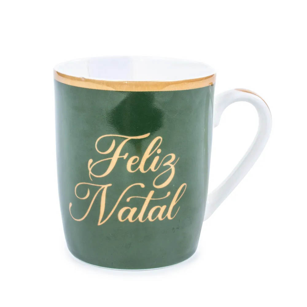 Caneca Natalina de Porcelana Feliz Natal - Verde - 440 ml