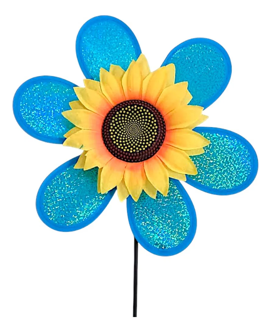 Com um lindo design em formato de girassol, este catavento é feito de plástico resistente, ideal para uso ao ar livre. Sua estrutura leve permite que as hélices girem suavemente com a brisa, criando um visual dinâmico que deixa qualquer espaço mais alegre e acolhedor.