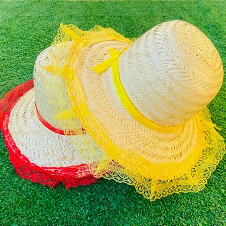 Chapéu de Palha com Renda - Cores das Faixas e Tranças Sortidas - 1 Unidade