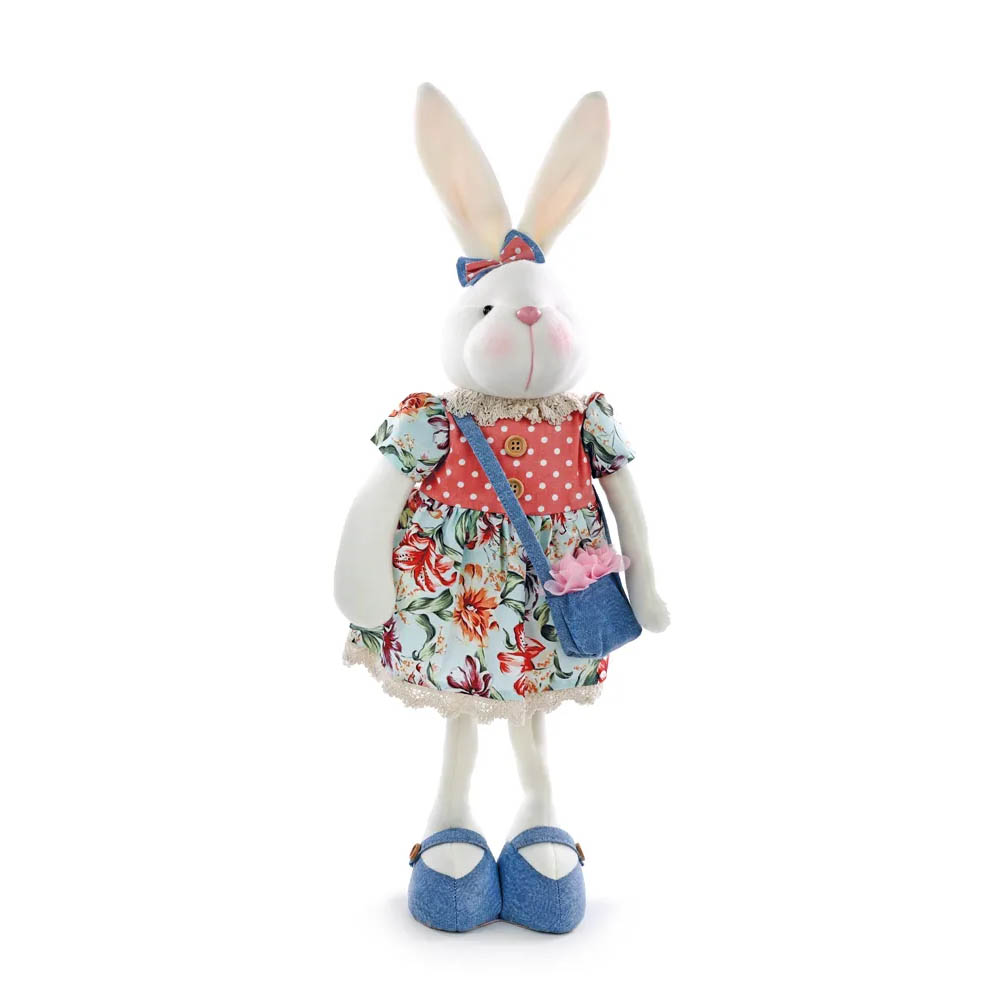 Coelho Decorativo com Estampa Floral é perfeito para criar uma decoração de Páscoa alegre, delicada e cheia de charme. Com roupas florais coloridas, s coelho aparecem em pé, com uma bolsa vibrante, trazendo um toque acolhedor e temático ao ambiente.