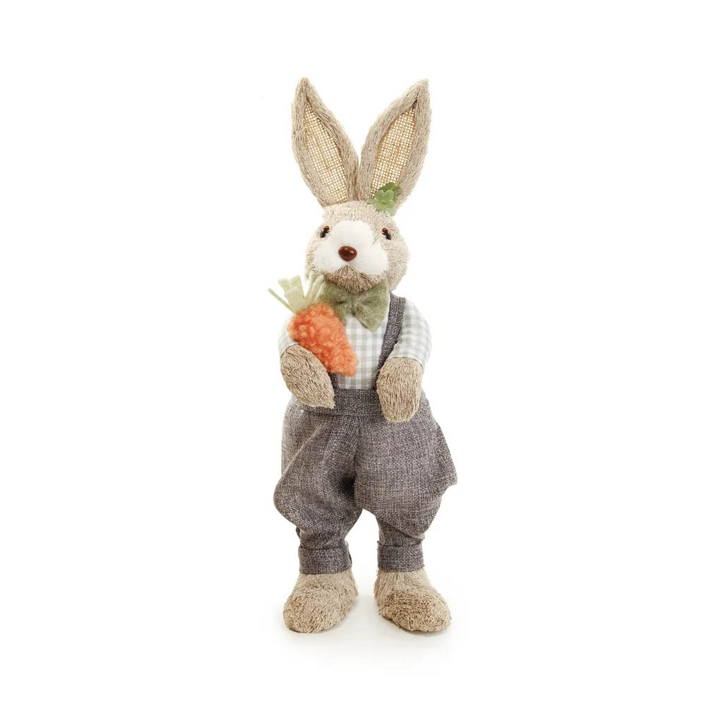 O Coelho Decorativo com Cenoura é uma peça charmosa e temática, ideal para deixar a decoração de Páscoa mais alegre e acolhedora. Vestindo roupa xadrez e chapéu, e segurando cenouras coloridas, ele traz um visual delicado que valoriza qualquer ambiente.