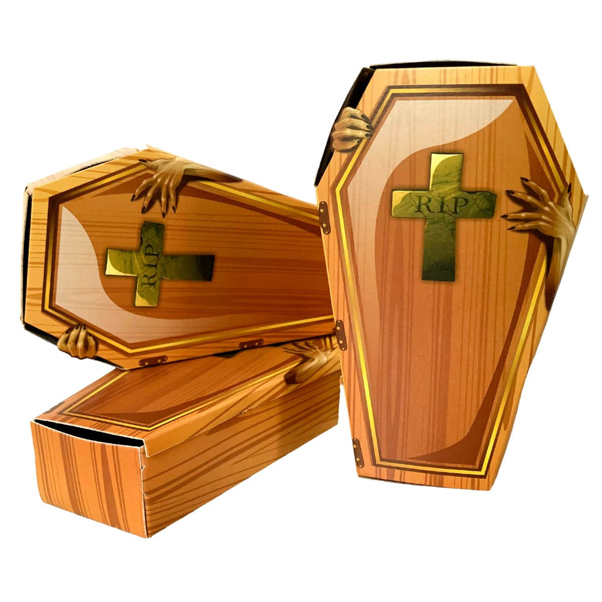 Um toque de cemitério para seu halloween, com o caixão relembre os mortos voltando a vida ou uma tumba.