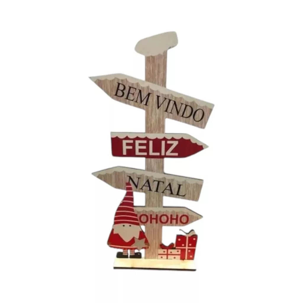 Enfeite de Mesa Placa Direções 16cm Natal Madeira