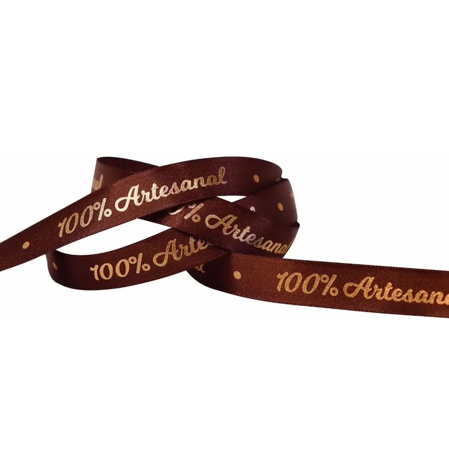 Fita de Cetim 100% Artesanal Marrom com Ouro – 15mm x 10m