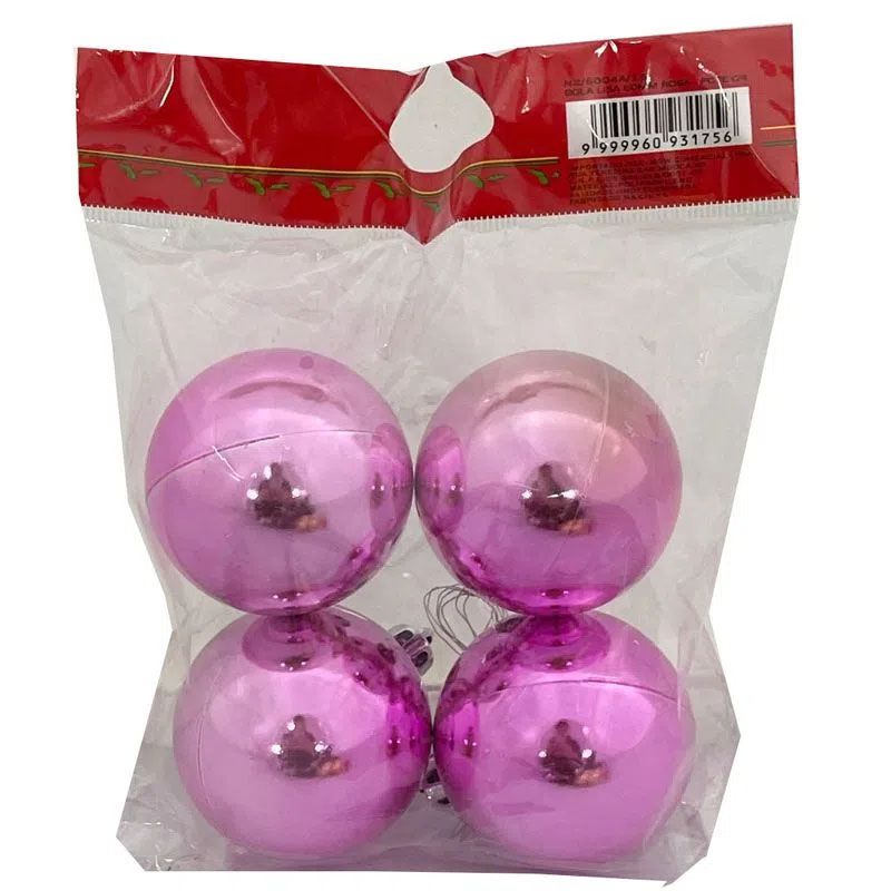 Bolas de Natal Rosa Lisa 6cm - 4 Unidades