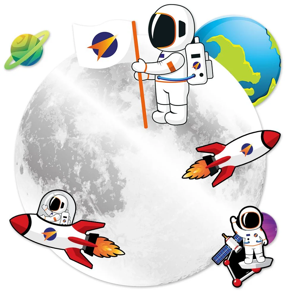 Ideal para festas infantis com tema espaço ou astronauta, pode ser aplicado em paredes, painéis ou mesas, deixando a decoração ainda mais completa e divertida.