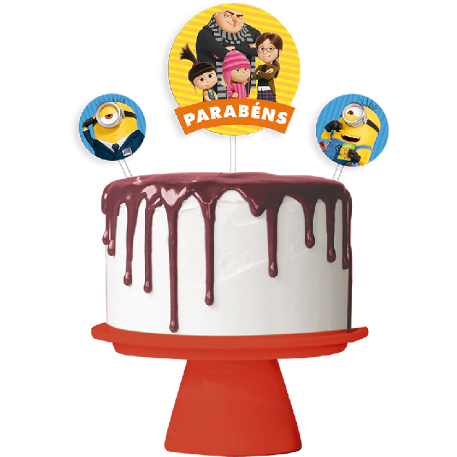 Acrescente diversão e estilo ao bolo da festa com este Kit Topo de Bolo inspirado em Meu Malvado Favorito 4! Com personagens como Minions e elementos temáticos, o conjunto vem com 3 toppers que brilham com personalidade, ideal para aniversários memoráveis.