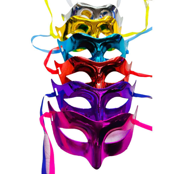 A Máscara Metalizada Unissex é perfeita para compor fantasias de Carnaval, bailes de máscaras e festas temáticas. Com acabamento metalizado e design elegante, ela adiciona charme e mistério ao visual, sendo ideal para adultos de todos os estilos.