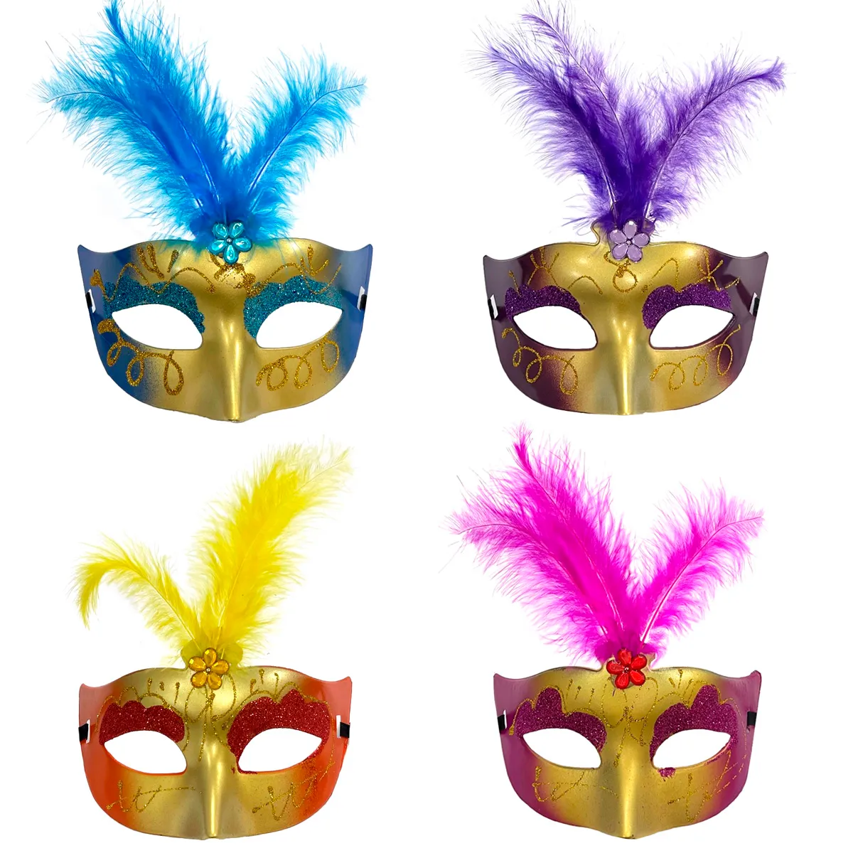 Máscara Veneziana com Penas – Cores Sortidas – 1 Unidade