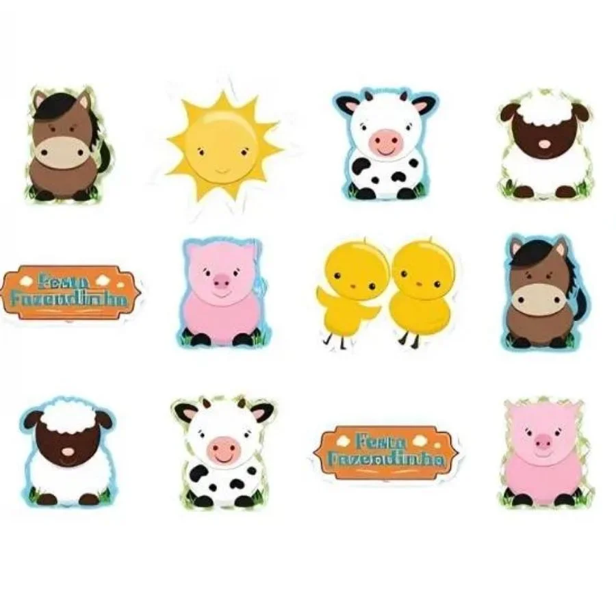 Mini Personagens Decorativos Fazendinha 8x6cm - 12 Unidades
