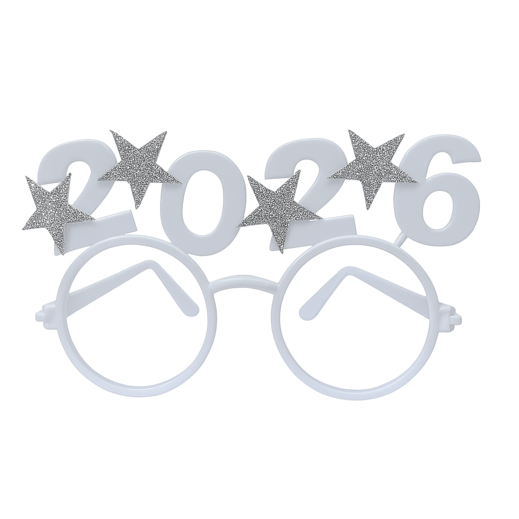 Entre no clima da virada com estilo! O Óculos de Ano Novo 2026 é o acessório perfeito para animar sua festa e garantir fotos incríveis. Feito em material leve e resistente, possui design divertido com o número 2026 e estrelas pratas em glitter que trazem brilho e alegria para a comemoração. Ideal para festas, eventos, ensaios e réveillons. Celebre o novo ano com muito glamour e diversão!