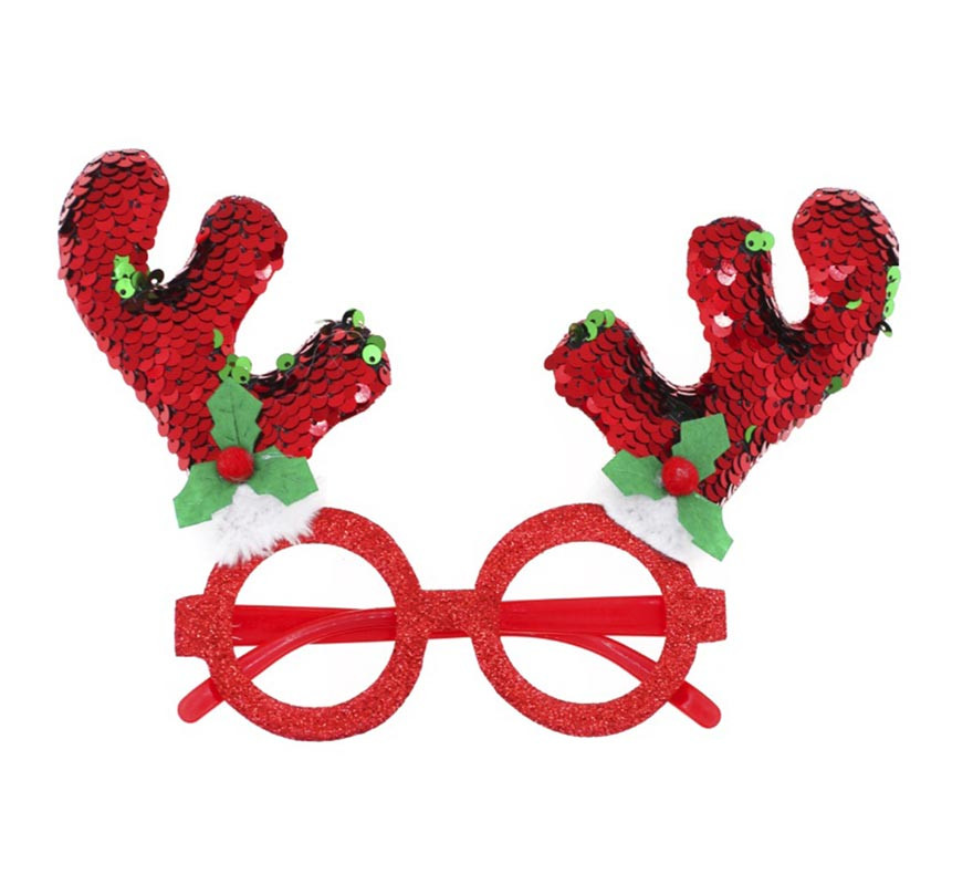 Óculos de Rena com Chifres Vermelhos Brilhantes – Lantejoula Natalina