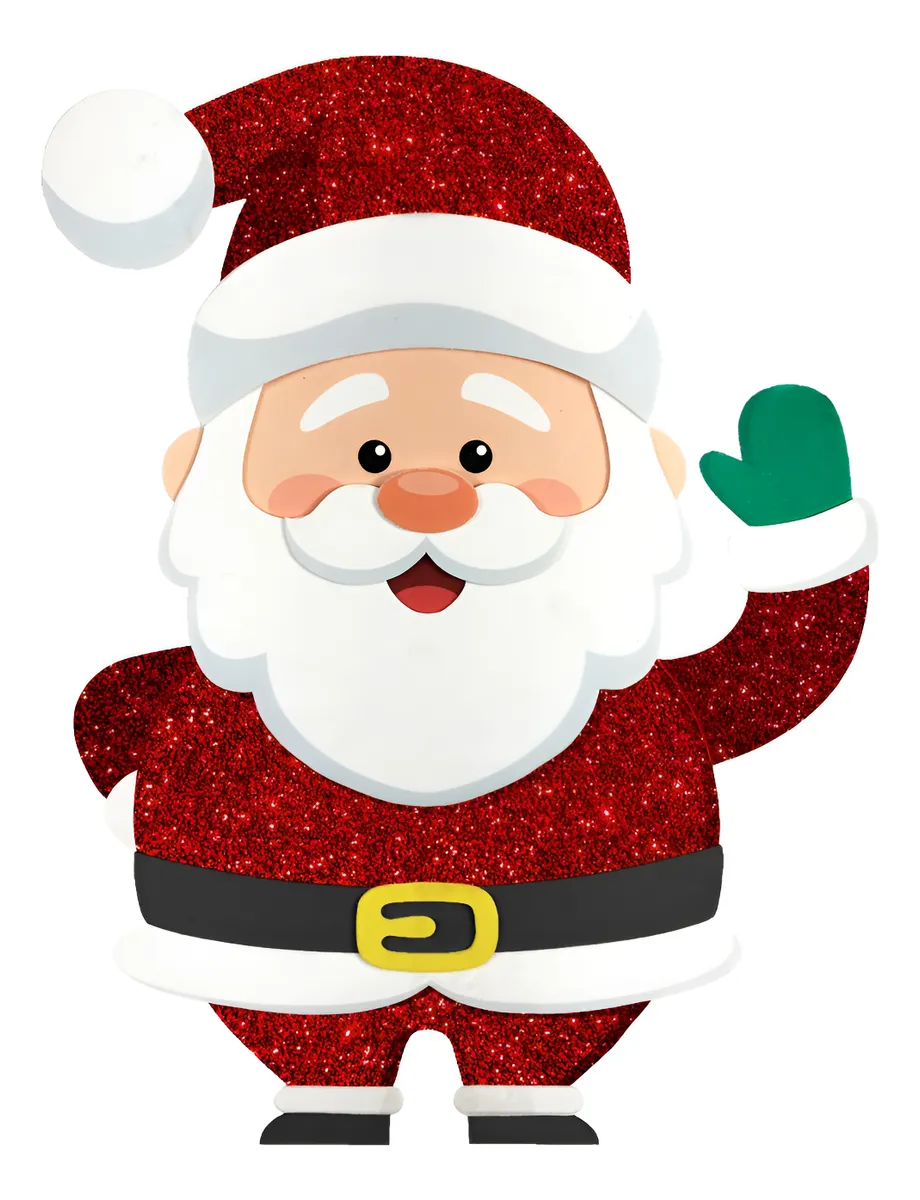 Perfeito para dar um toque alegre e festivo ao ambiente, ele traz o Papai Noel em destaque e o brilho especial do glitter, ideal para paredes, portas, vitrines ou painéis de festa.