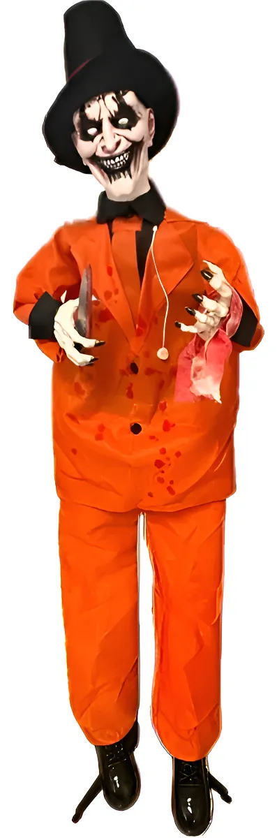 Com efeitos de som e movimento, o palhaço surpreende convidados e cria uma atmosfera envolvente e arrepiante, perfeita para entradas, vitrines, salões de festa, corredores e cenários de terror. Seu tamanho imponente garante forte impacto visual e fotos incríveis.