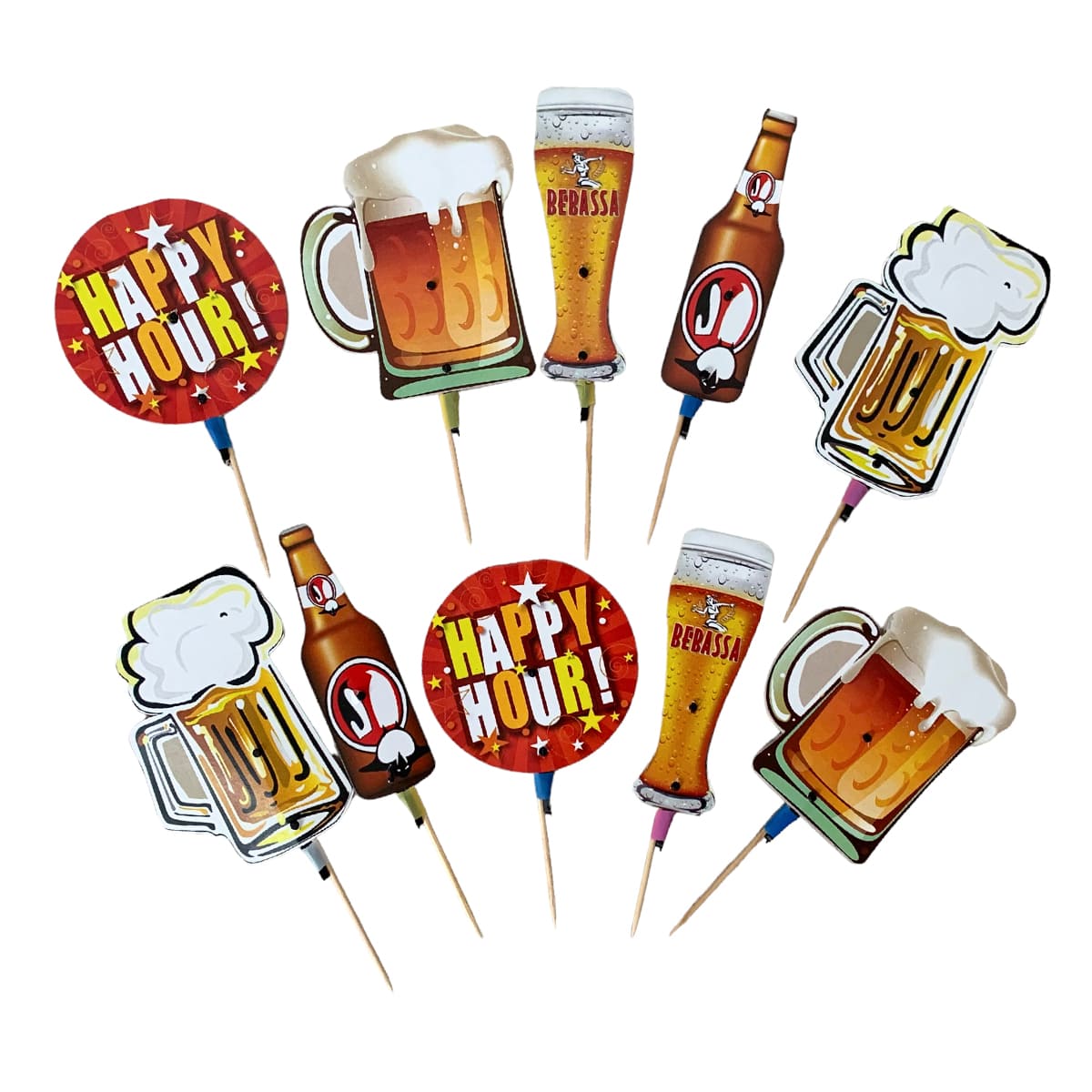 Palito Aperitivo Cerveja Happy Hour – Decorativo para Petiscos (10 Unidades)