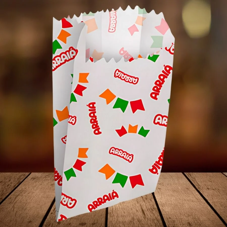 Saco de Papel para Pipoca Arraiá 7x14cm – Pacote com 50 Unidades