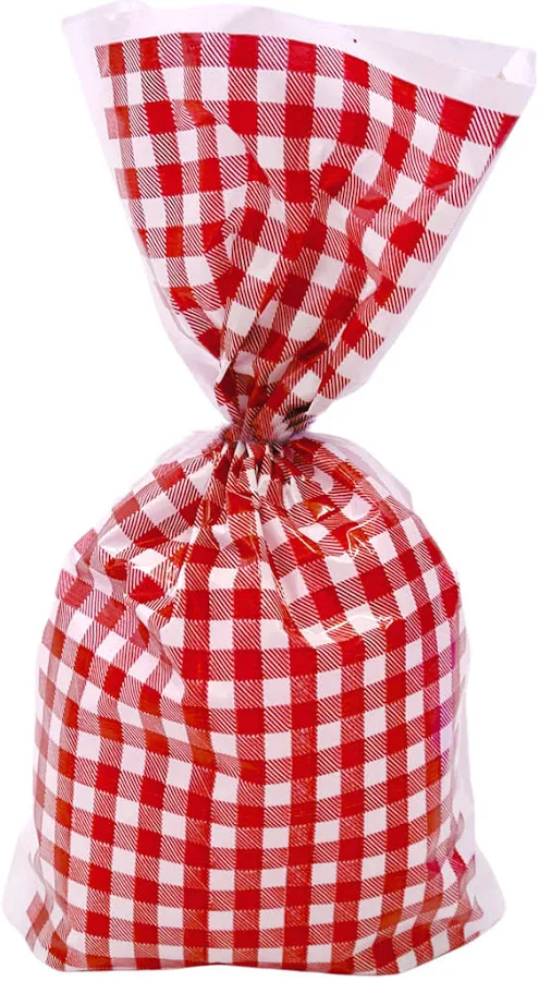 O saco xadrez vermelho é ideal para embalar doces, lembrancinhas e itens de festa com um toque temático e decorativo. Muito utilizado em festas juninas, também pode ser aplicado em diversas ocasiões pela sua estampa clássica.
