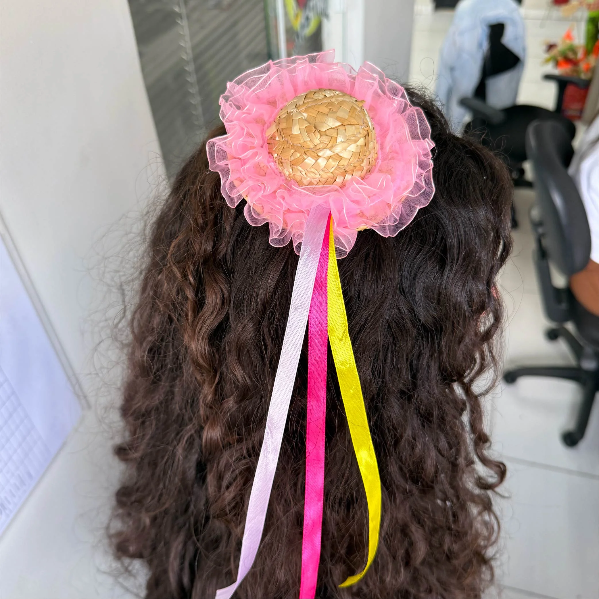 Entre no clima das festas juninas com a Tiara Chapéu com Fitas! Um acessório divertido e cheio de charme, perfeito para complementar o look caipira em festas, arraiais, quermesses e apresentações.