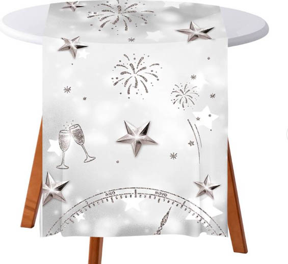 Trilho de Mesa em Tecido 40x200cm Prata Ano Novo 2026 ✨