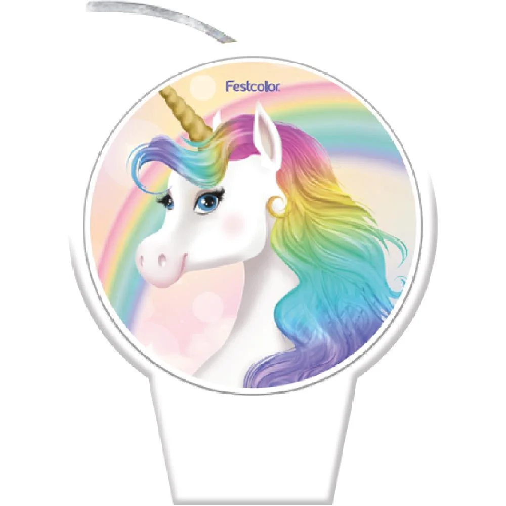 Vela Plana de Aniversário Festa Unicórnio - Pavio Mágico - 1 Unidade