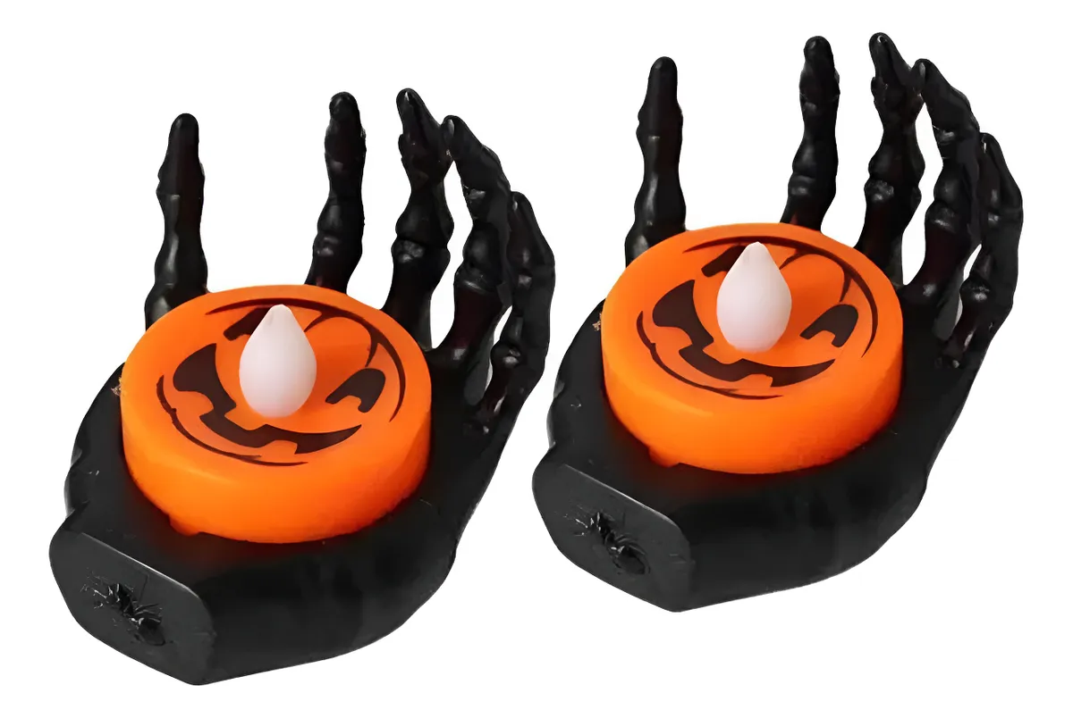 Velas LED Mãos de Esqueleto Halloween – Decoração Assustadora